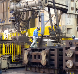 鋳造はとくに大物になると難しいのですが、弊社では昭和41年からフルモールド鋳造法を技術導入して、IT技術によりこれを支えています。